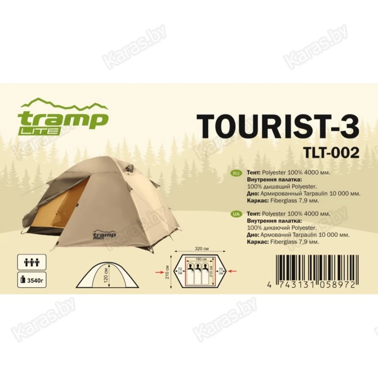 Туристическая трехместная палатка Tramp Lite Tourist 3 предназначена для любительских походов и непродолжительных путешествий в теплое время года.