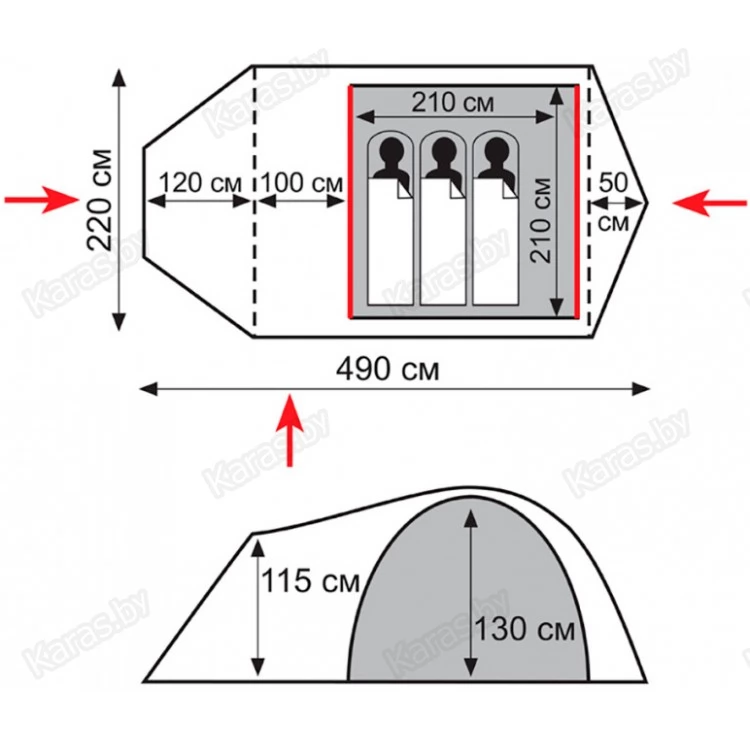 Отличная вентиляция и большой объем спального отсека, в котором могут разместиться до 3 человек.