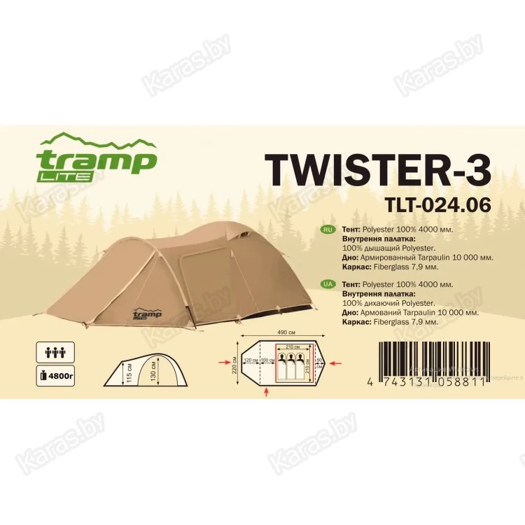 Туристическая палатка Tramp Lite Twister 3 (v2) Sand
