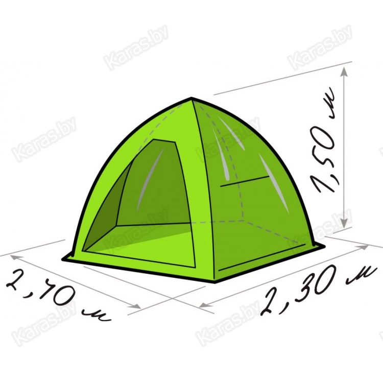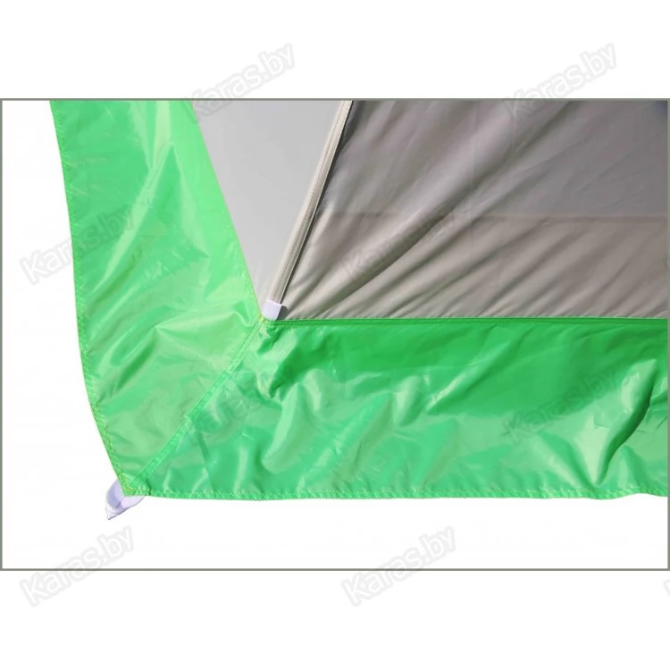 - Окраска палатки выполнена в ярко-салатовом цвете, и даже в самый пасмурный день в ней будет всегда светло и уютно. Для безопасности в ночное время предусмотрены светоотражающие окантовки ребер и растяжки.