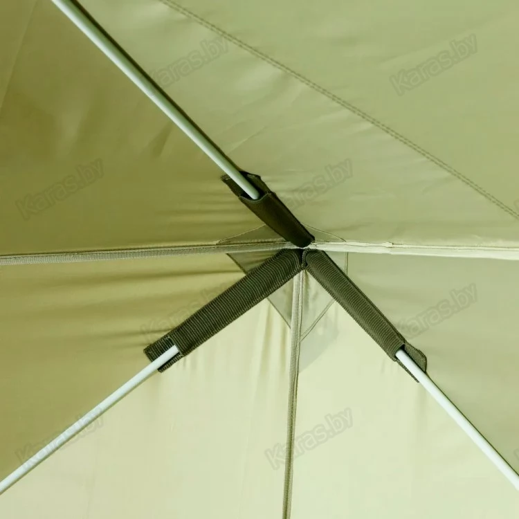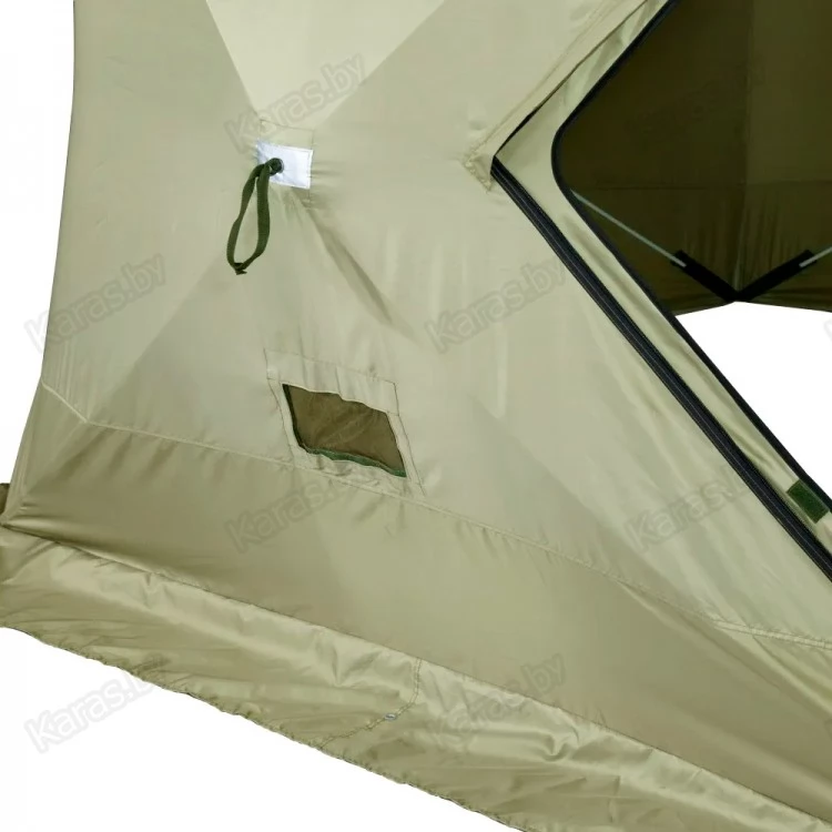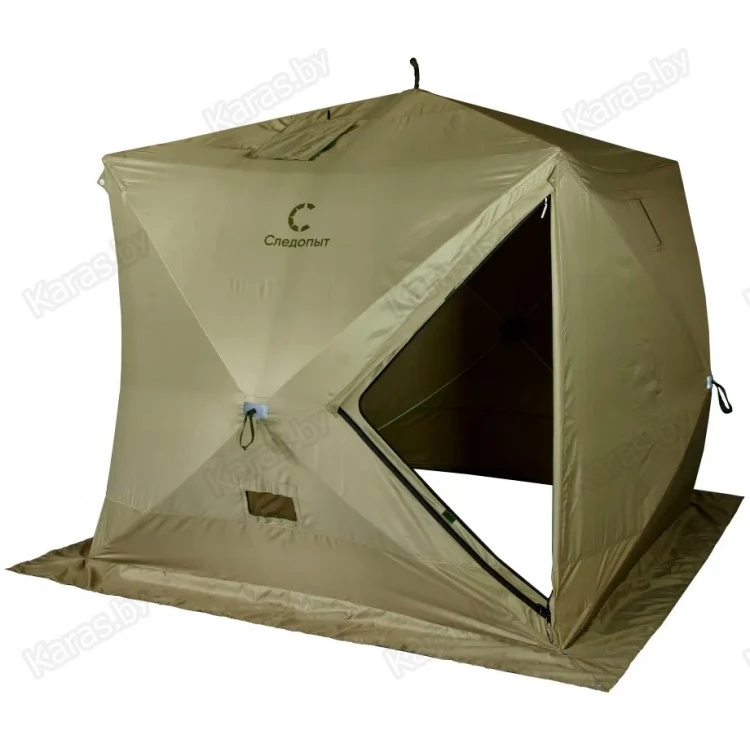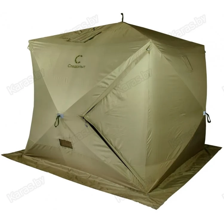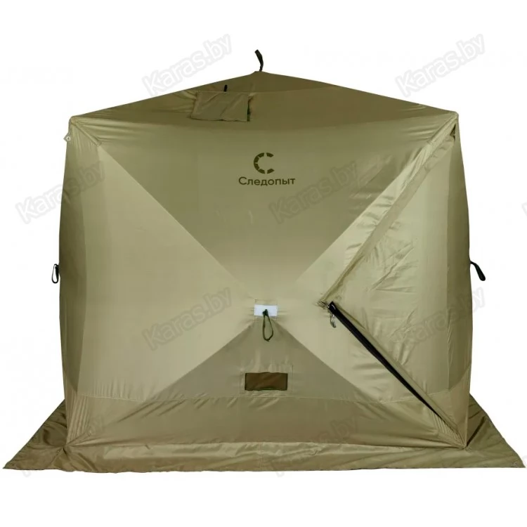 Баня-палатка Следопыт может использоваться как в качестве походной бани, так и в качестве палатки. Благодаря автоматическому механизму быстро переводится из транспортировочного положения в рабочее — установка занимает всего несколько минут. В нижней части предусмотрена наружная юбка для защиты от продувания.