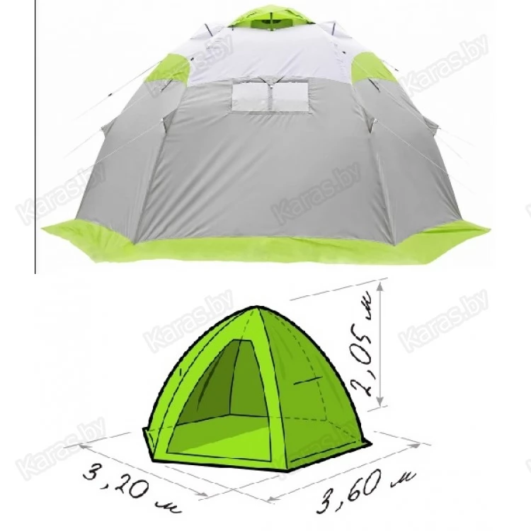 Тент палатки изготовлен из современных высокотехнологичных тканей с водонепроницаемым покрытием, обеспечивающих надежную защиту от атмосферных осадков, сильного ветра и мороза.