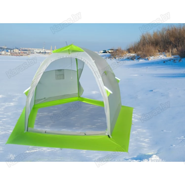 Окраска палатки выполнена в ярко-салатовом цвете, и даже в самый пасмурный день в ней будет всегда светло и уютно. Конструкция тента и всех аксессуаров (например внутренний утепленный тент) устроена по принципу максимальной световой проводимости, что позволяет не пользоваться окнами для освещения. Для безопасности в ночное время предусмотрены светоотражающие элементы на ребрах палатки.