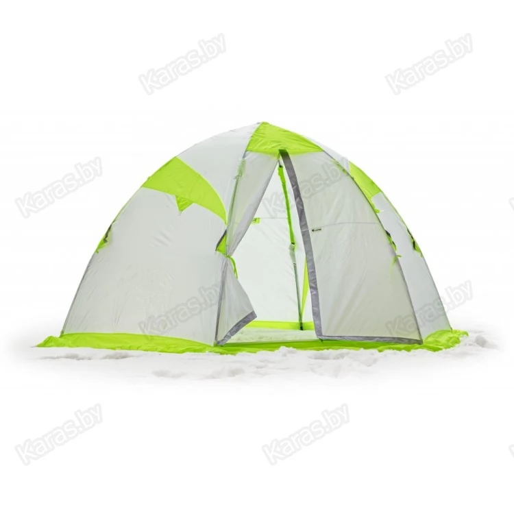 - Окраска палатки выполнена в ярко-салатовом цвете, и даже в самый пасмурный день в ней будет всегда светло и уютно. Для безопасности в ночное время предусмотрены светоотражающие окантовки ребер и растяжки.