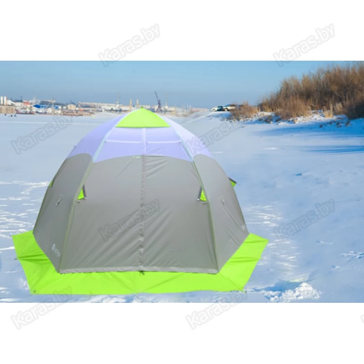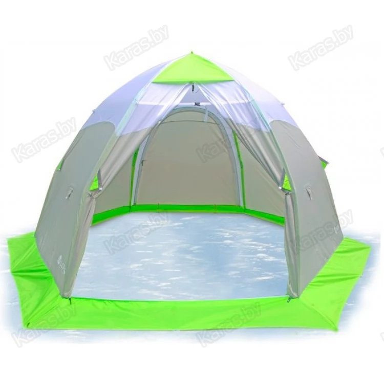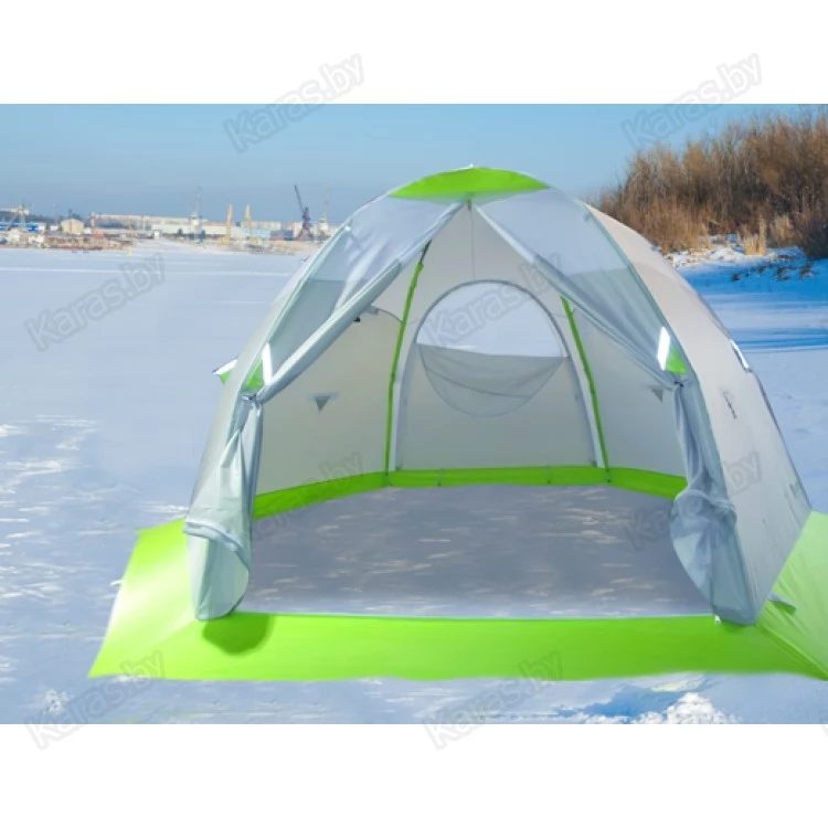 Окраска палатки выполнена в ярко-салатовом цвете, и даже в самый пасмурный день в ней будет всегда светло и уютно. Конструкция тента и всех аксессуаров (например внутренний утепленный тент) устроена по принципу максимальной световой проводимости, что позволяет не пользоваться окнами для освещения. Для безопасности в ночное время предусмотрены светоотражающие элементы на ребрах палатки.