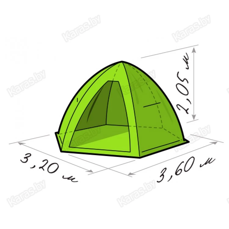 - Верхняя точка тента в месте упора каркаса усилена плотной тканью для защиты от протирания.