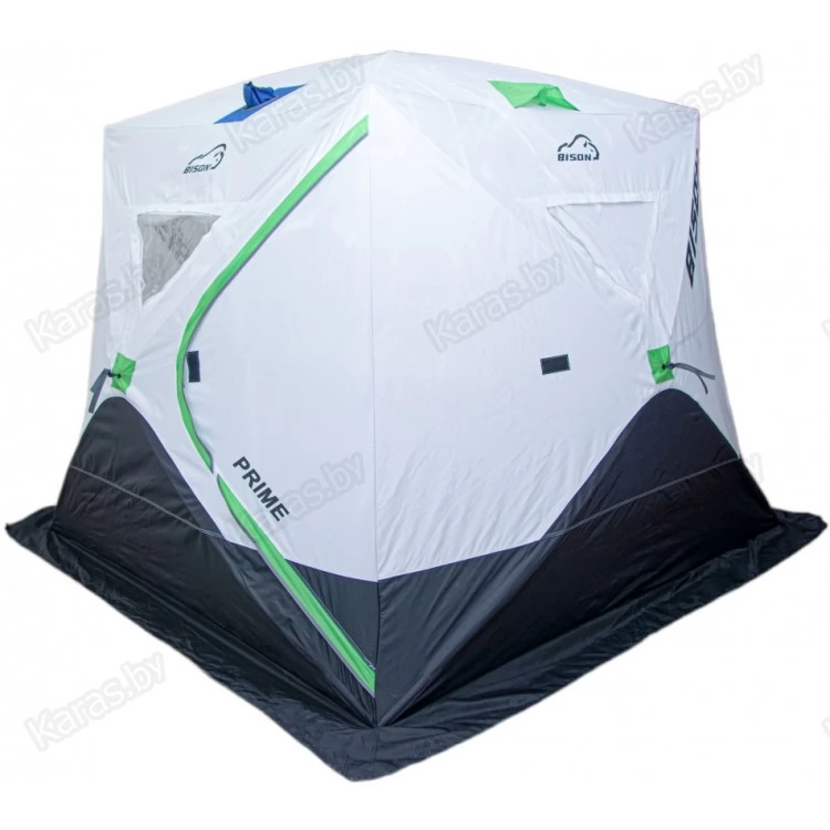 Палатка зимняя Bison Prime Куб (2.40х2.40х2.10м) бело-зелёная