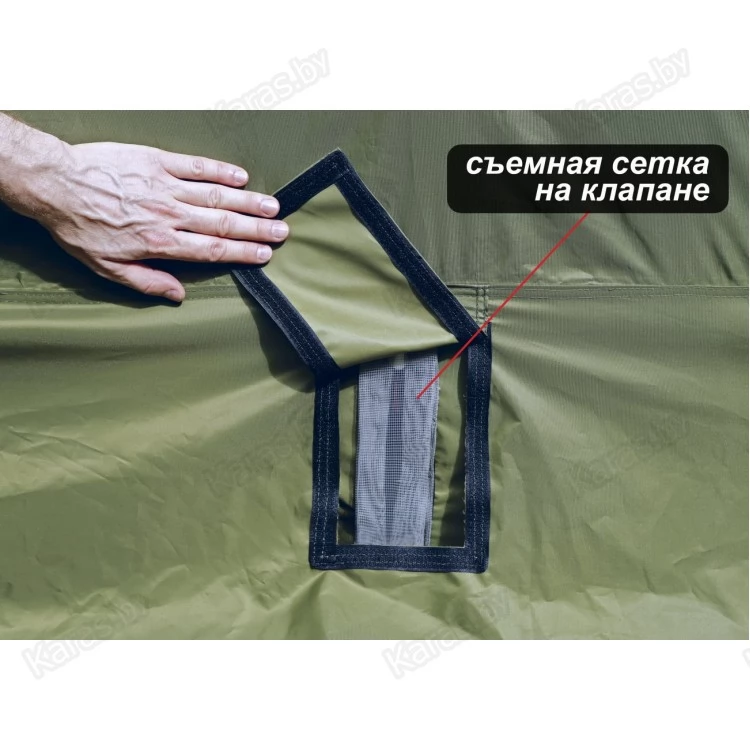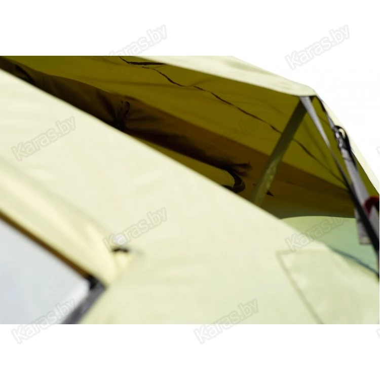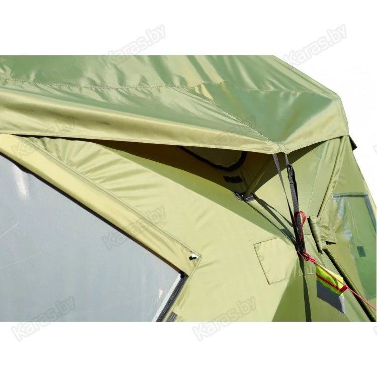 Внешний тентовый слой изготовлен из прочной износостойкой ткани высокой влагостойкости с применением высокотехнологичных средств герметизации швов, а также влаго- и ветрозащиты дверных, оконных и вытяжных проемов. Все дверные и оконные проемы, а также приточные и вытяжные клапаны оснащены противомоскитными сетками.