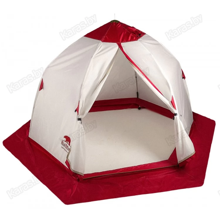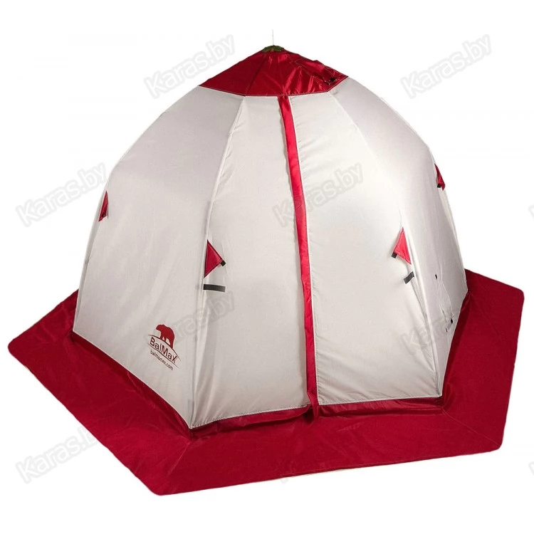 Палатка Balmax конструкции зонт с шестью лучами обладает высокой ветроустойчивостью и изготовлена из прочного и легкого дюралюминиевого прутка, что позволяет быстро и легко установить ее на лед.
