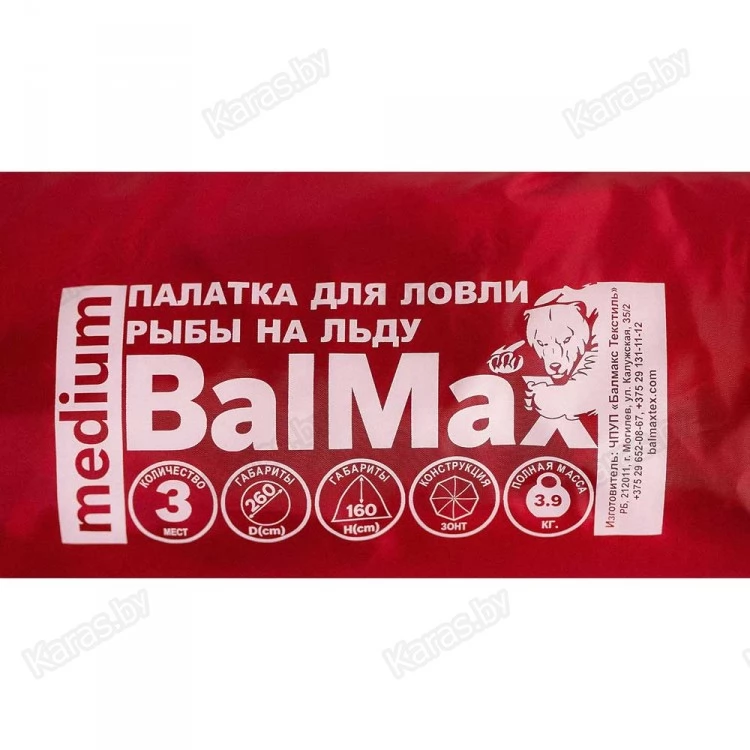 Палатка Balmax конструкции зонт с шестью лучами обладает высокой ветроустойчивостью и изготовлена из прочного и легкого дюралюминиевого прутка, что позволяет быстро и легко установить ее на лед.