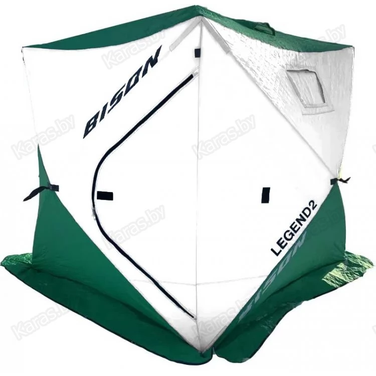 Палатка зимняя Bison Legend 2 Pro трёхслойная утеплённая (2.20х2.20х2.20м) бело-зелёная