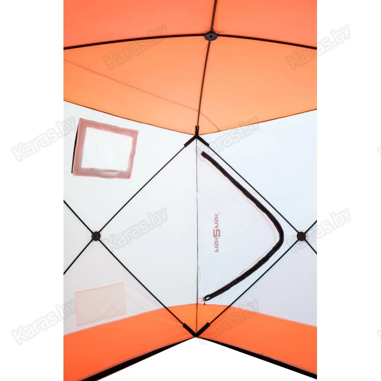 Зимняя палатка Fish2Fish Куб (каркас композит) выполнена в форме куба. Габариты зимней палатка Fish2Fish Куб позволяют сверлить лунки без каких-либо неудобств, находясь прямо в ней. В отличие от классических палаток, автоматов или зонтов зимняя палатка Fish2Fish Куб более ветроустойчива. Благодаря своей конструкции палатка выдерживает порывистый ветер. Легко ставится одним человеком в любую погоду. В тенте имеется 2 полностью съемные форточки, изготовленные с применением морозостойкой прозрачной ПВХ-пленки на контактной ленте, с дополнительным закрывающимся клапаном из ткани. Удобный карман на внутренней стенке тента. Основной цвет белый с цветной крышей и порогами.