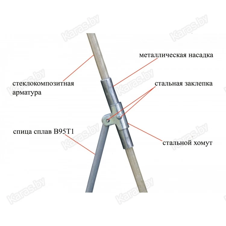 дуги - стеклокомпозитная арматура (Ø 9 мм), спицы - пруток, сплав В95Т1 (Ø8 мм) |