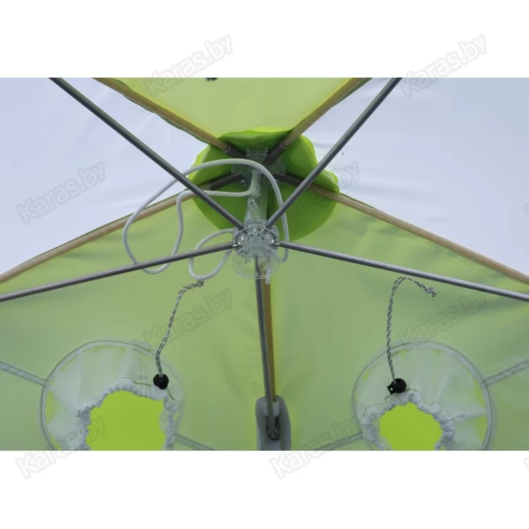 На противоположных от входа стенках расположены два смотровых окошка с регулировочной планкой. Окна открываются на молнии №10, что позволяет использовать палатку при самых лютых морозах. В палатке специально не используются вшитые прозрачные пластиковые окна, которые имеют ограничения по морозостойкости.