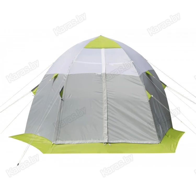 Палатка оснащена девятью усиленными креплениями для растяжек: 5 креплений на дугах и 4 на стенках палатки.