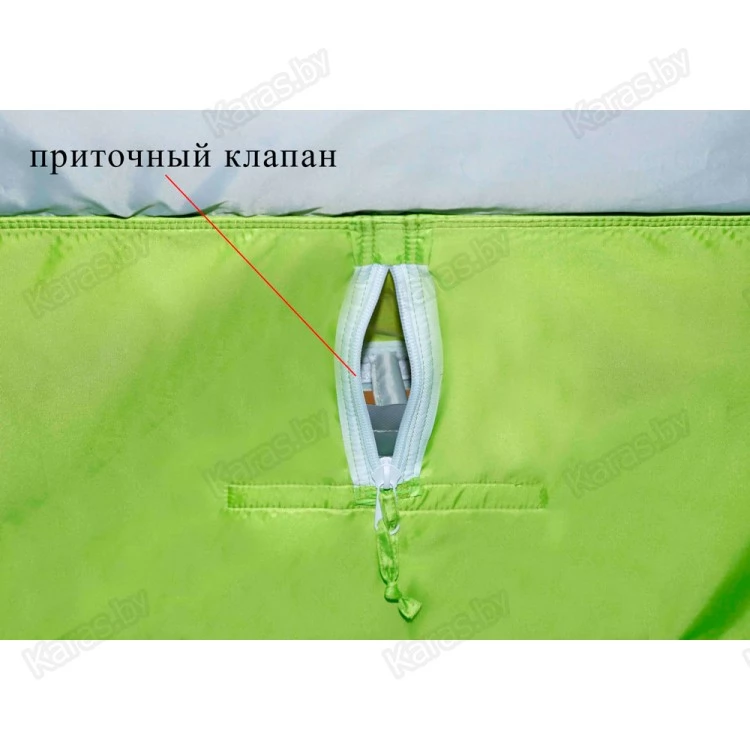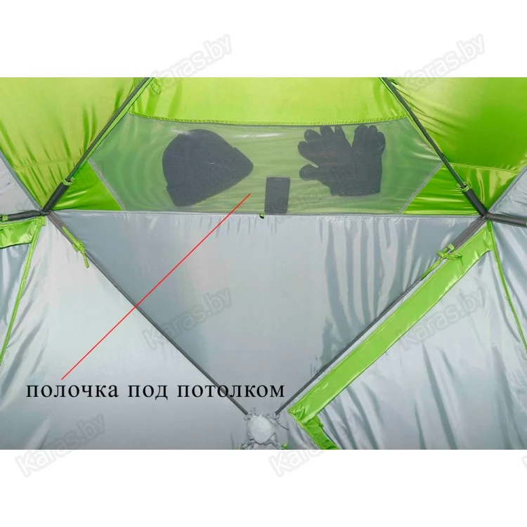 - Дно внтури палатки гарантированно остается сухим в процессе рыбалки, что позволяет размещать на его поверхности различные предметы обихода без риска их промокания.