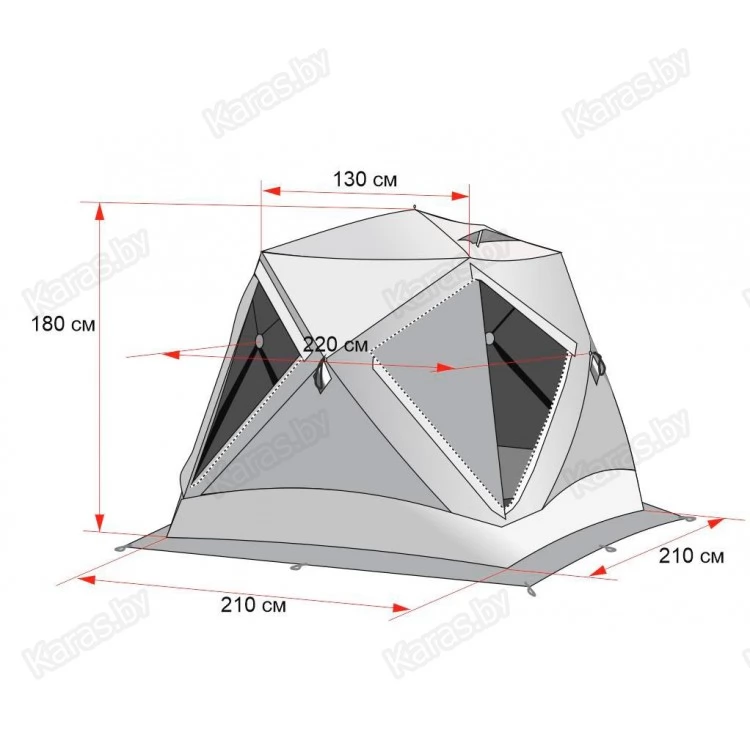 - оптимальное соотношение пропорций конструкции! Высота палатки 180 см при ширине дна 210 х 210 см