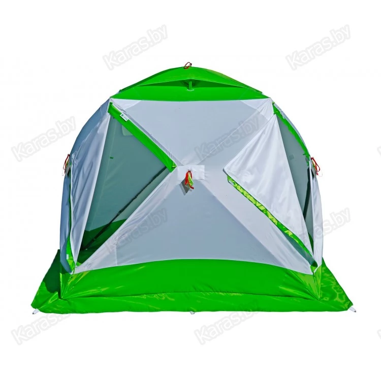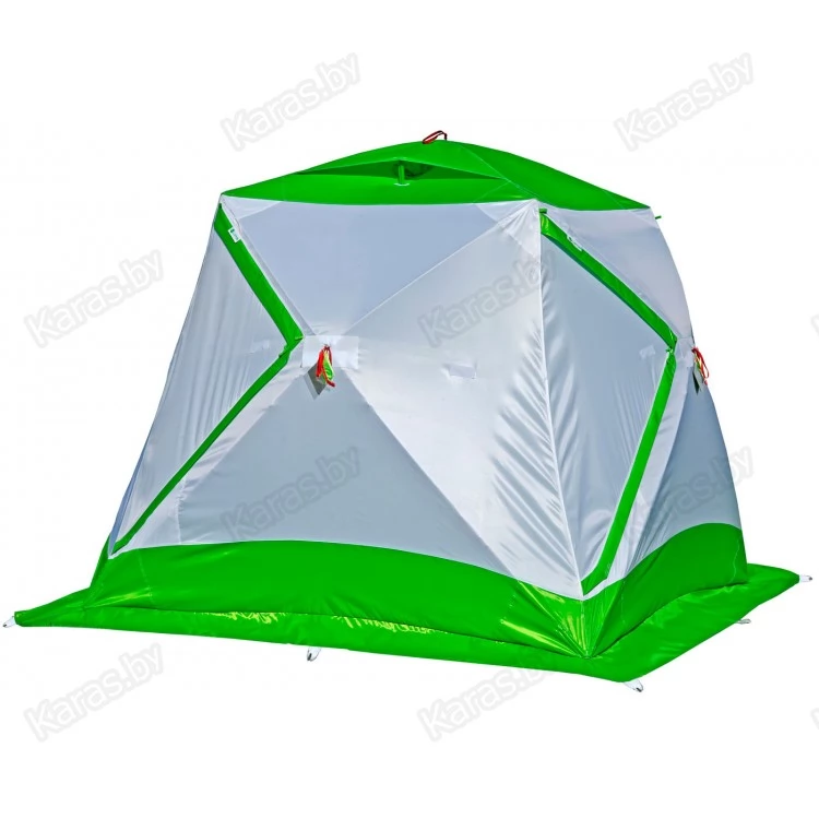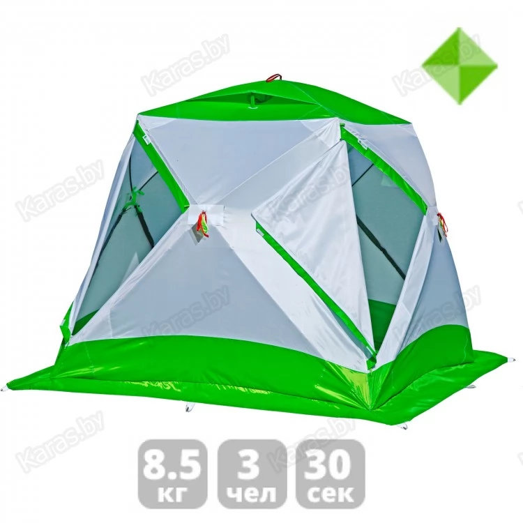 ЛОТОС Куб М2 - модель 2017 года, является модернизированной версией третьего поколения.Палатка оснащена уникальным комбинированным каркасом высокой жесткости. Дизайн палатки выполнен в бело-салатовом цветовом исполнении с применением светопроводящих тканей.