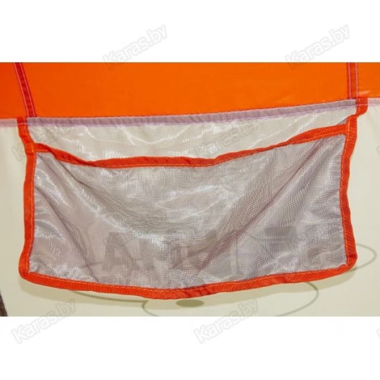 - Большое количество удобных карманов внутри палатки на разных уровнях. В том числе и под куполом, для хранения мотыля