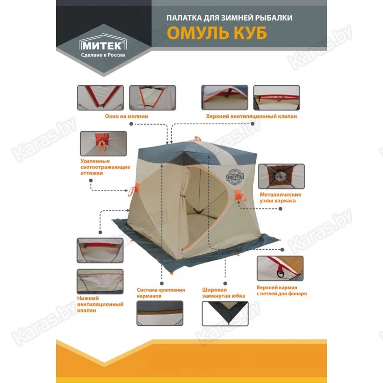 Омуль - недорогая модель палаток для зимней рыбалки. В отличие от китайских аналогов, палатки Митек выдерживают серьёзные нагрузки. В палатках продумано всё до мелочей, в производстве используются только проверенные ткани и фурнитура.