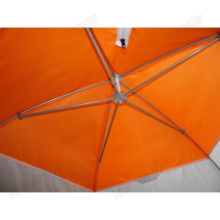 1. Вынуть зимнюю палатку из чехла, откинуть нижние спицы палатки и расстегнуть застежку-молнию.