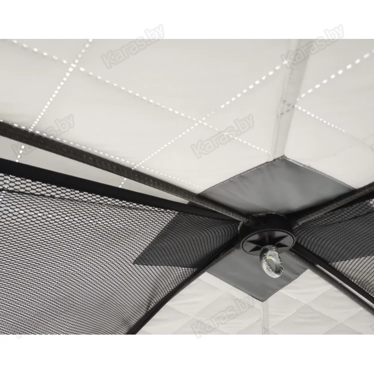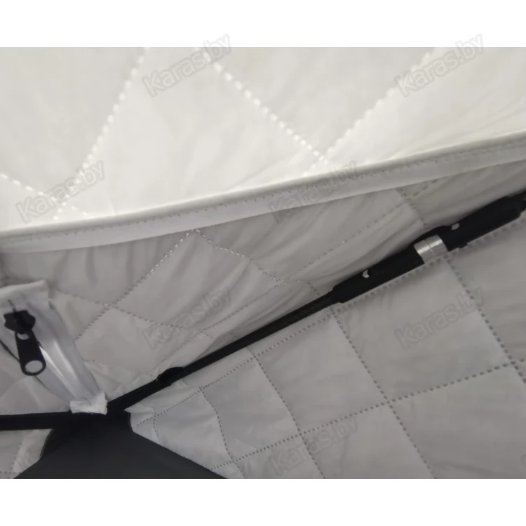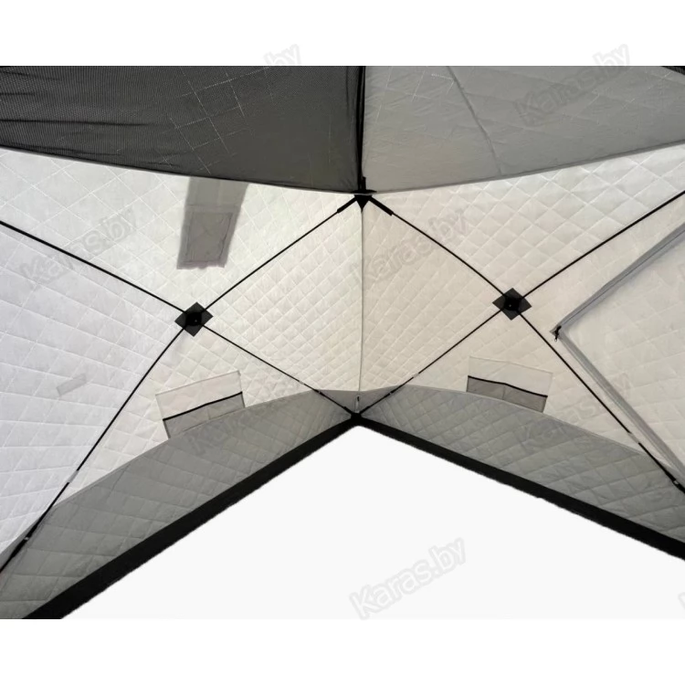 Стенки палатки имеют трехслойную структуру, что способствует значительному удержанию тепла внутри укрытия. Внешний слой выполнен из ткани Oxford 240 PU 2000, средний слой из синтепона плотностью 120 гр/м2, внутренний слой из ткани Oxford 210 PU1000. Все три слоя скрепляются при помощи технологии "термостежка". Преимущество такой технологии: отсутствие отверстий от игл, отсутствие миграции утеплителя, повышенная прочность и износостойкость материала.