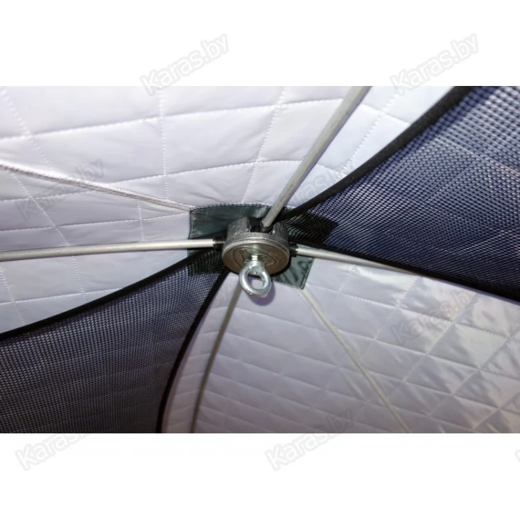 5.При креплении укрытия на льду распределять растяжки симметрично по всему периметру, что поможет избежать перекоса и чрезмерной нагрузки на молнию входной двери.