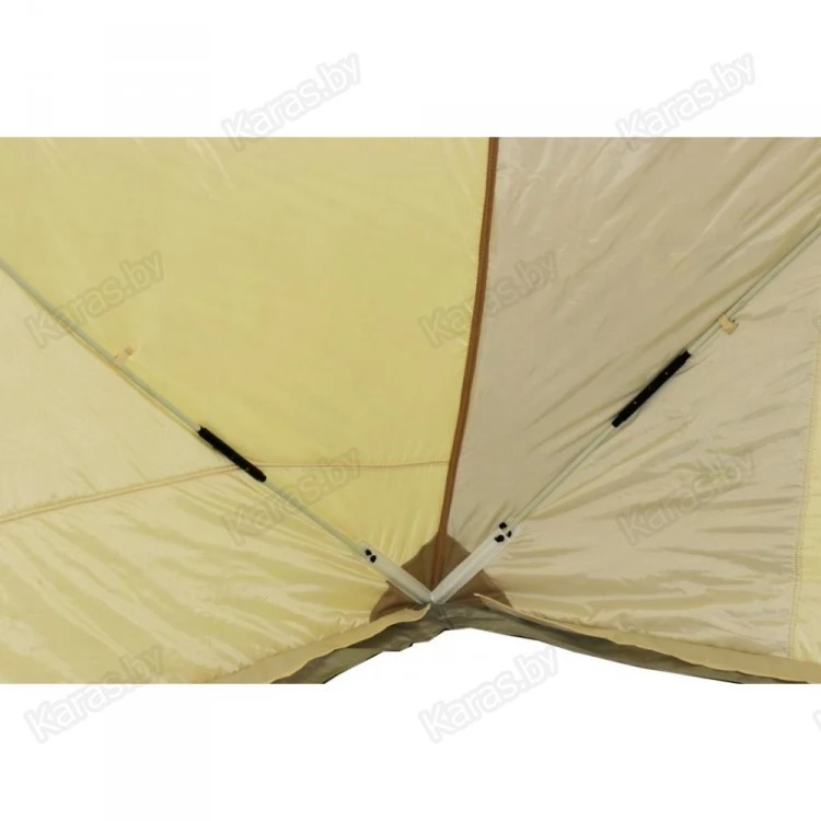 Во всех новых моделях 2018 года используется новая технология - "склейка": толстый слой утеплителя клеится между двумя слоями водоотталкивающей ткани (Oxford 240 D 1000 PU). Благодаря новой технологии утеплитель не теряет своих свойств и надёжно удерживает тепло внутри палатки. Утеплитель палатки - синтепон плотностью 150 г на кв.м. Синтепон не сдавливается и стенки палатки остаются более толстыми и теплыми.