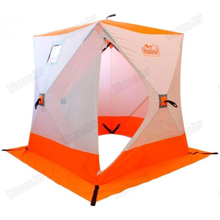 Зимняя палатка «Следопыт «Куб» обеспечивает комфорт для рыбалки в зимнее время года. Благодаря системе крепления дуг, «хабы» палатки очень быстро переводятся из транспортного положения в рабочее состояние. «Хаб» выполнен из морозостойкого, ударопрочного материала - нейлона (полиамида). Установить палатку можно в течение одной минуты даже одному человеку. Каркас изготовлен из прочного стеклопластикового гладкого прутка диаметром 10 мм. Данная конструкция обеспечивает легкое раскрытие, устойчивость палатки в собранном виде при порывистом ветре. Это позволяет увеличить износостойкость каркаса, даже без использования растяжек.