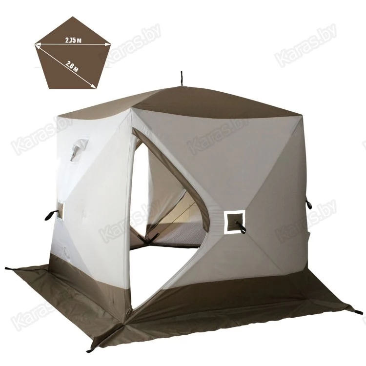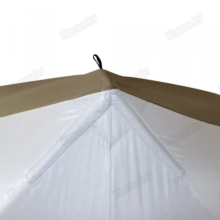 Просторная палатка, за счёт пятиугольной формы может вмещать в себя до 5 человек. Каркас палатки изготовлен из стеклопластикового прутк d 10 мм, который скреплен хабом (материал Полиамид PA-6). Верхняя ткань Oxford 240D PU2000 дублируется с подкладочной тканью (термостежка подкладка 190T + синтепон 150 г/кв.м.). Такой материал отличается высокими теплоизоляционными свойствами, что положительно сказывается на поддержании комфортной температуры в палатке. Износоустойчивость материала позволяет увеличить срок службы изделия. Есть возможность крепления пола на текстильную застежку (Velcro).
