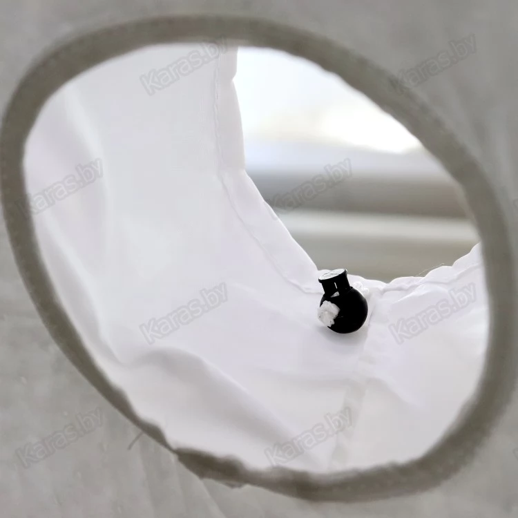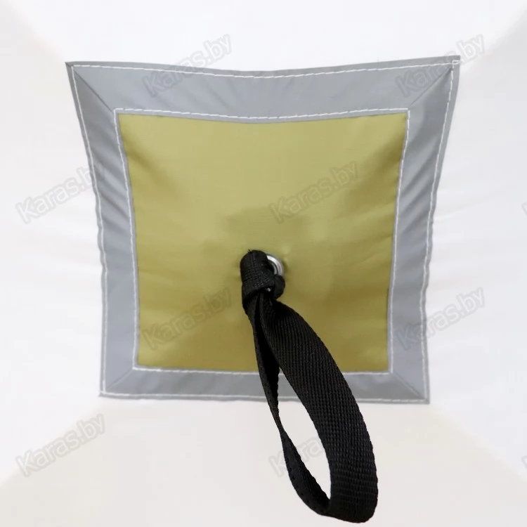- Вентиляция. Предусмотрено место для вытяжной трубы. Причем, отверстие может утягиваться по размеру и фиксироваться в определенном положении. Для палатки 210х210 см дополнительно предусмотрено отверстие снизу для приточки воздуха.