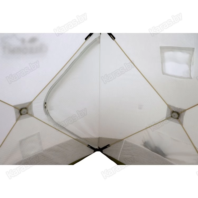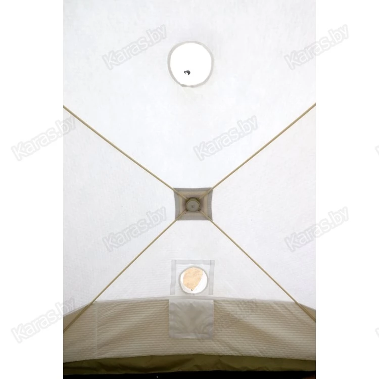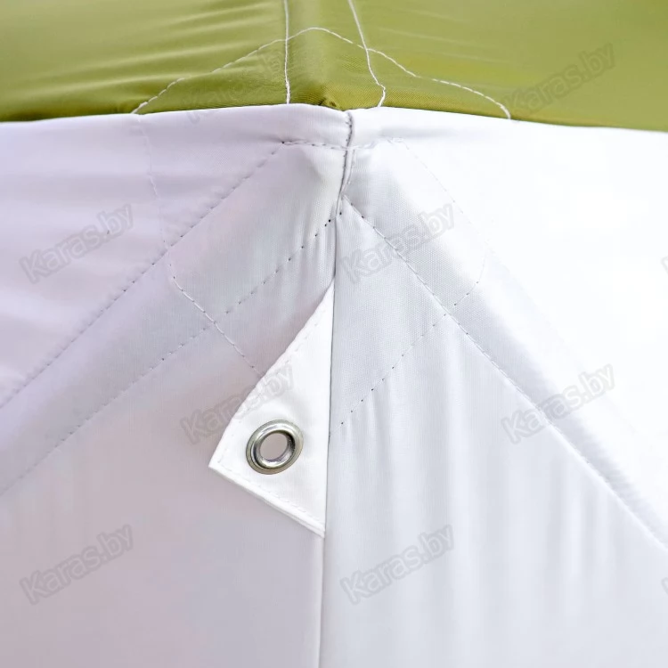 - Ткань из материала Oxford 240D PU1000. Обеспечивает долгую эксплуатацию. Палатка отвечает самым высоким требованиям. Плотная трехслойная ткань дого держит тепло. Верхний внешний слой 240D 1000 PU, внутрянняя ткань 190 T и утеплитель синтепон 150 г/кв м. Снизу к тенту пришита защитная внешняя юбка. Материал палатки позволит чувствовать себя комфортно длительное время при температурах до -30 градусов (при использовании отопительных приборов).