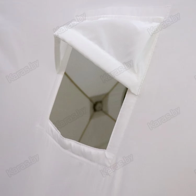 - Два прозрачных окна. Окна сделаны из прозрачного морозоустойчивого ПВХ. Их у палатки 2 шт. Окна закрываются специальными накладками на липучках.
