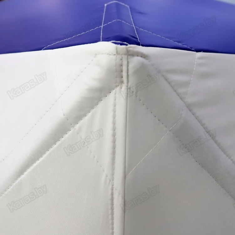 Зимняя палатка куб Следопыт 1,8*1,8 трехслойная PF-TW-07 с автоматическим механизмом очень быстро приводится из транспортного в рабочее состояние. Разложить палатку удается всего за несколько минут. Каркас сделан из прочного стеклопластикового гладкого прута 10 мм. Тент из надежной ткани Oxford 210D PU 1000, продублирован термостежкой: подкладка 190Т с синтепоном 100 г/м2. Такой материал отличается особой мягкостью, прочностью, долго удерживает тепло.