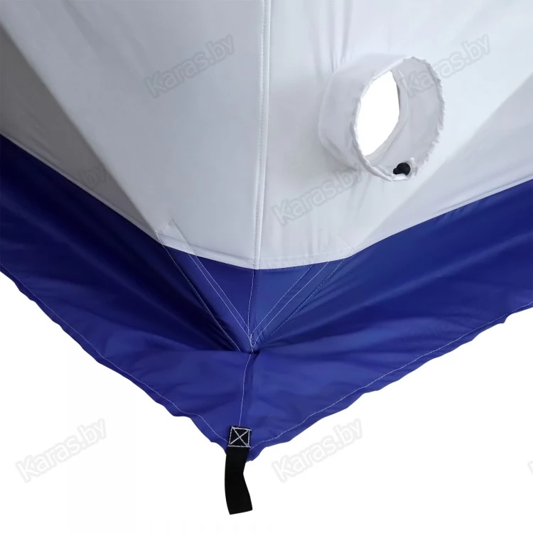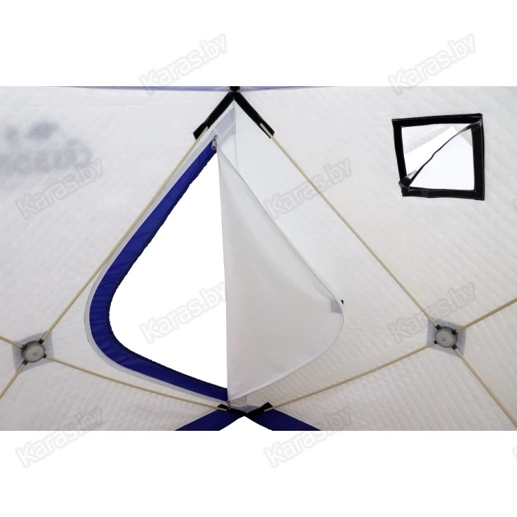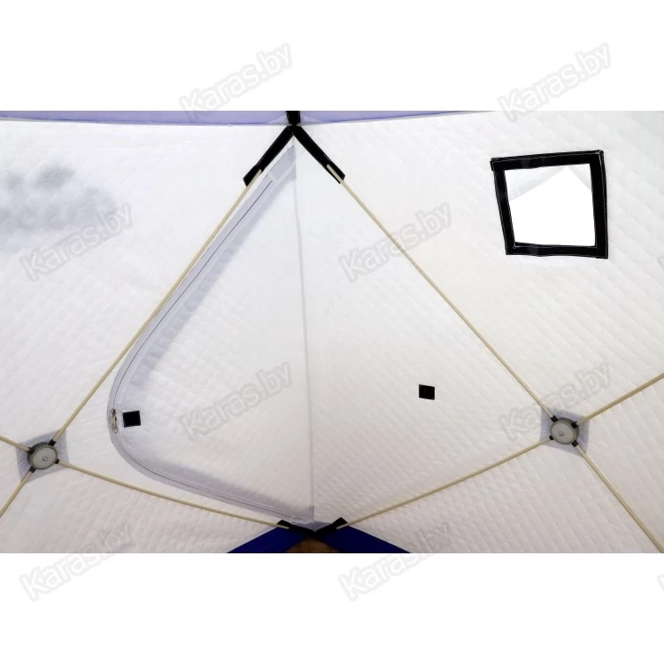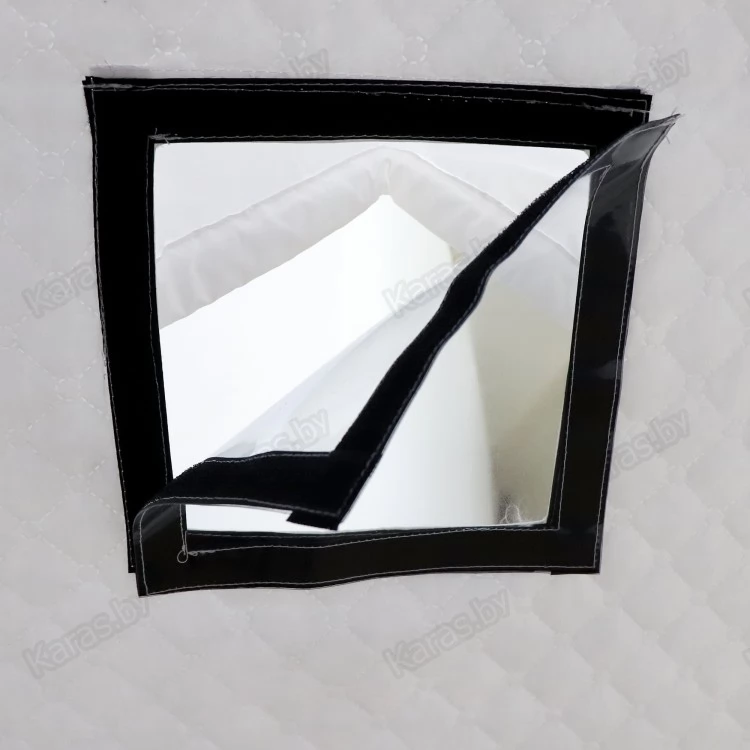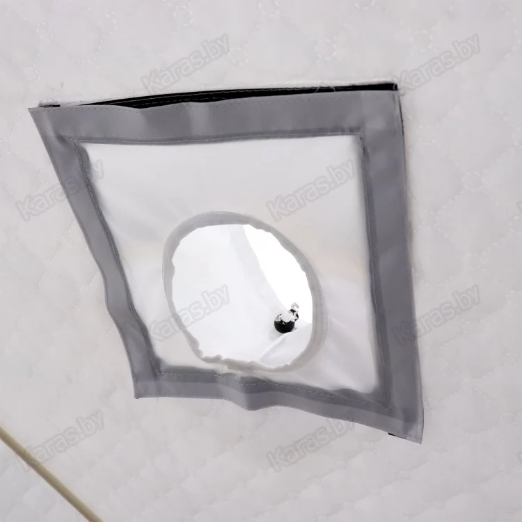 В нижней части палатки пришита внешняя юбка. Внутри палатки имеются карманы для хранения рыболовных мелочей. Для хорошего освещения внутреннего пространства в тент встроено окно, которое выполнено из прочного ПВХ 500 мк. А для создания комфортного микроклимата внутри закрытой палатки имеется вытяжной клапан на утяжке.