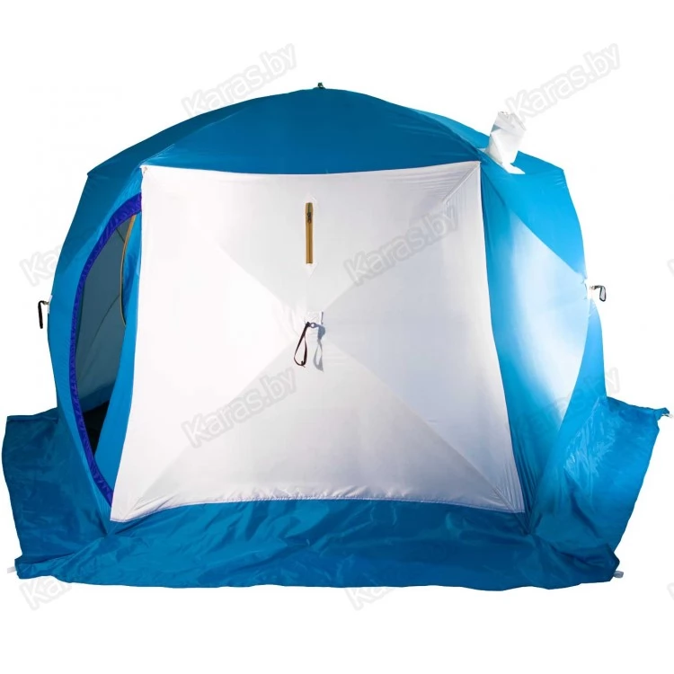 Конструкция имеет вывод под печную трубу, что дает дополнительные возможности для обогрева в холодное время года. Также есть москитная сетка, а значит, палатка подойдет и для летних походов.