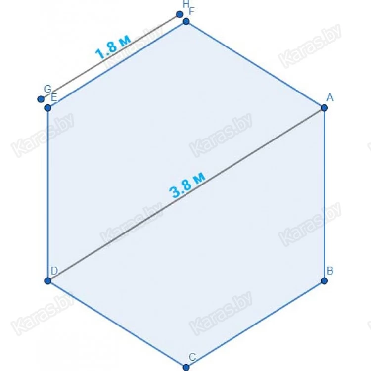 - Размер каждой стороны: 1.8 м (6 сторон)