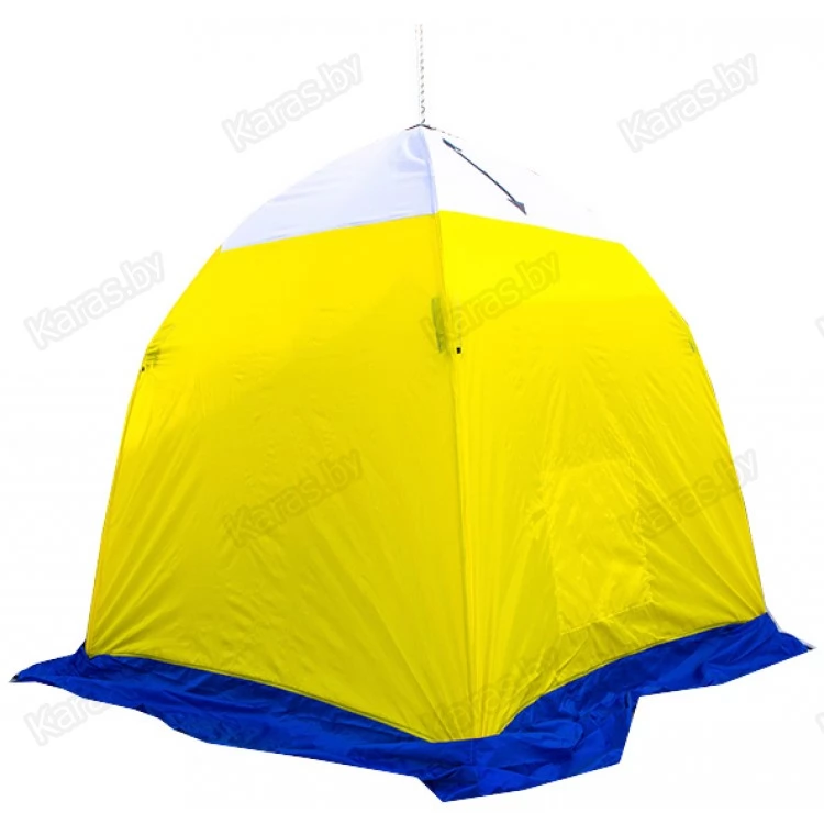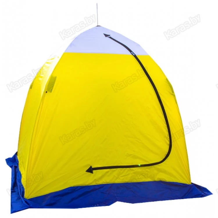 Крепление зимней рыболовной палатки ко льду производится растяжками от дуг каркаса.
