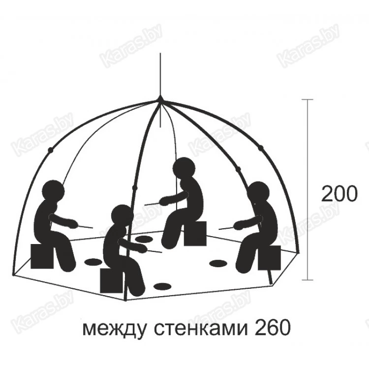 Крепление зимней рыболовной палатки ко льду производится растяжками от дуг каркаса.