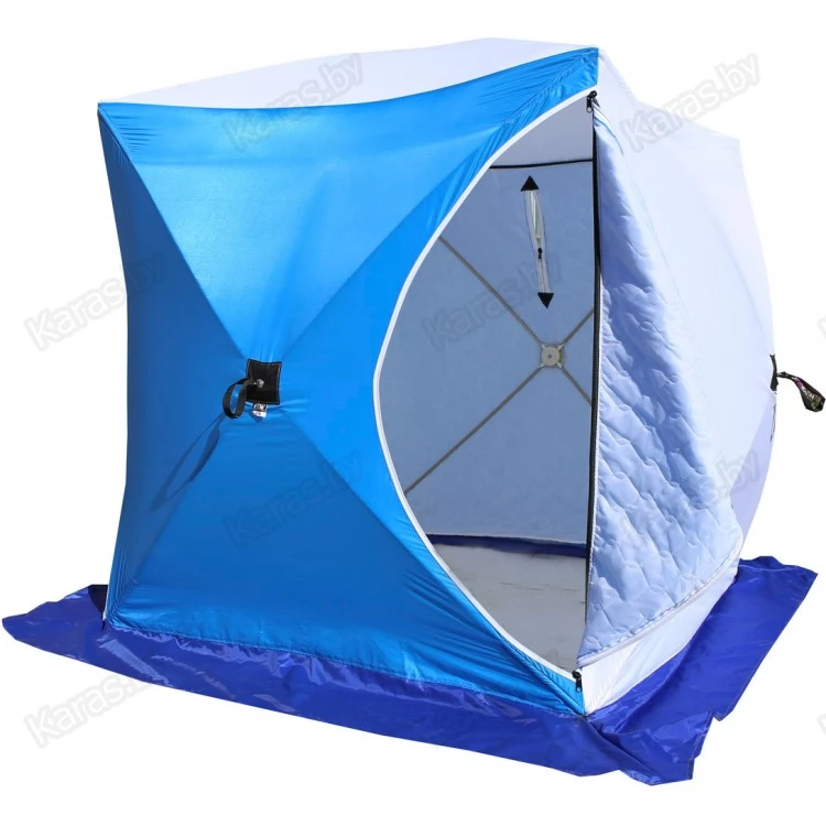 Прочный каркас палатки выполнен из фибергласса (стеклопластик) с добавлением карбона. Этот материал хорошо амортизирует и поэтому не боится ветровых нагрузок. Также он имеет минимальный вес (в сравнении с дюралевыми каркасами), что очень удобно при ходовой рыбалке, когда палатку приходится переносить на себе. Прочная водостойкая не продуваемая ткань тента (Oxford 300PU) надежно защитит от ветра и атмосферных осадков. Нижний тент стеганое полотно из синтепона и подкладочной ткани таффета (термостежка). Ткань таффета обладает водо- и грязеотталкивающими свойствами. Устойчива к истиранию и механическим воздействиям. Тент палатки выполнен из ткани, которая позволяет пропускать дневной свет во внутрь палатки, благодаря чему рыболов имеет возможность ловить рыбу в дневное время без подсветки дополнительными осветительными приборами. Вентиляционное окно закрывается на молнию. Снаружи расположена сплошная ветрозащатная юбка.
