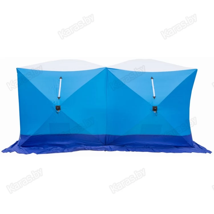 Палатка КУБ 3 ДУБЛЬ специально разработана для любителей подледной рыбалки. Быстросборная палатка СТЭК КУБ 3 ДУБЛЬ для зимней ловли со льда позволит рыболову чувствовать себя максимально комфортно на зимней рыбалке в любых погодных условиях. В собранном виде палатка имеет прямоугольную форму с выпуклыми наружу стенками, что способствует увеличению внутреннего объема и позволяет рыболовам стоять в полный рост.