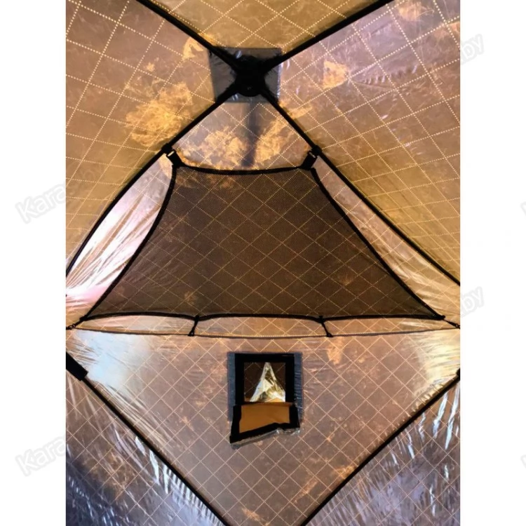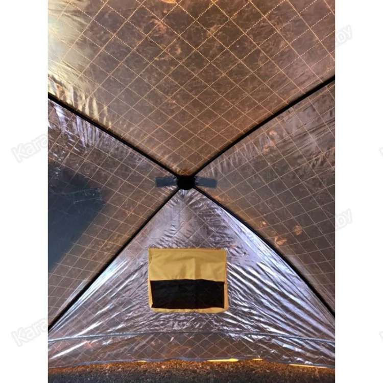 Палатка Tramp Ice Fisher 3 Thermo самая теплая палатка. Металлизированное напыление внутренней ткани дает эффект теплового зеркала, отражая тепло и не давая выходить ему наружу. Нетканый утеплитель (средний слой) усиливает теплозащитные свойства палатки, позволяя работать в условиях низких ( до -30°С) температур. Палатка снабжена снежной юбкой.