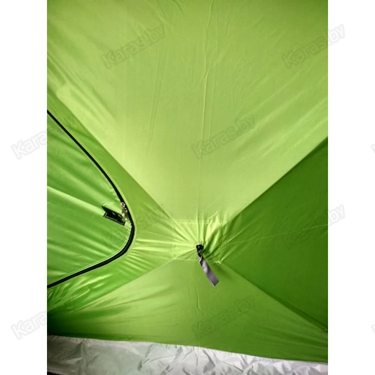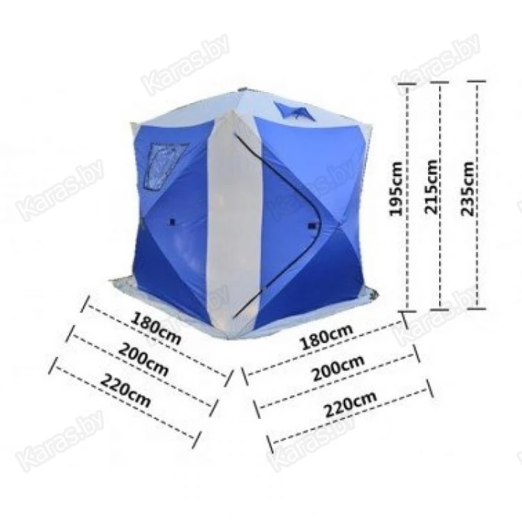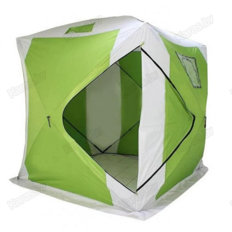 Обновленная зимняя палатка для рыбалки в форме куба создана специально для зимней рыбной ловли на льду и рассчитана на экстремальные погодные условия – такие, как сверхнизкая температура воздуха, порывистый ветер, сильная метель. Благодаря ветроустойчивой и быстросборной конструкции зонтичного типа, палатку можно разобрать и собрать без особых усилий за пару минут. За счет того, что каждая стена и купол палатки имеют собственный каркас, дуги изделия не выкручиваются, а стенки тента остаются на своем месте даже при сильном ветре.