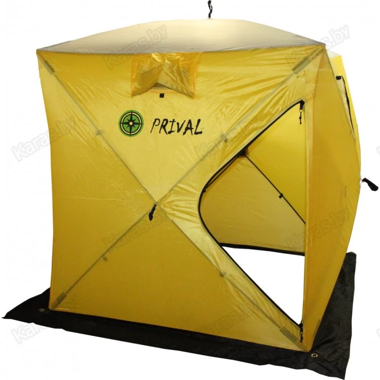 Палатка для зимней рыбалки PRIVAL Сахалин 2 имеет форму куба. Такая форма палатки позволяет более эффективно использовать внутреннее пространство в сравнении с зонтиками. В углы куба удобно встанет и баллон с газом, и рюкзак, и сумка с вещами, да и раскладушка, не съедая предназначенное для ловли пространство.
