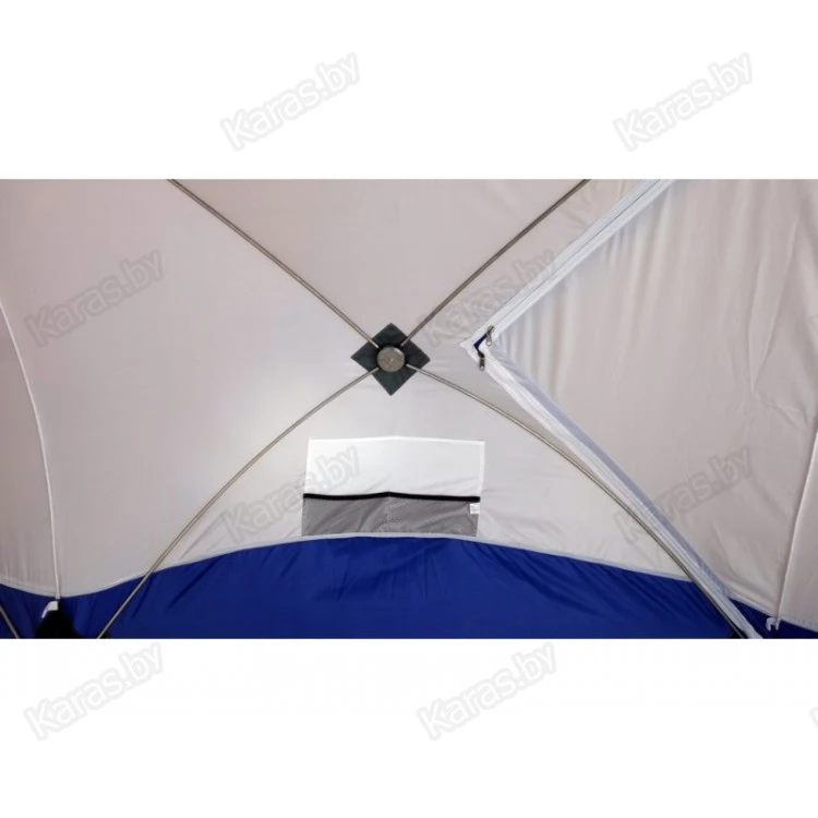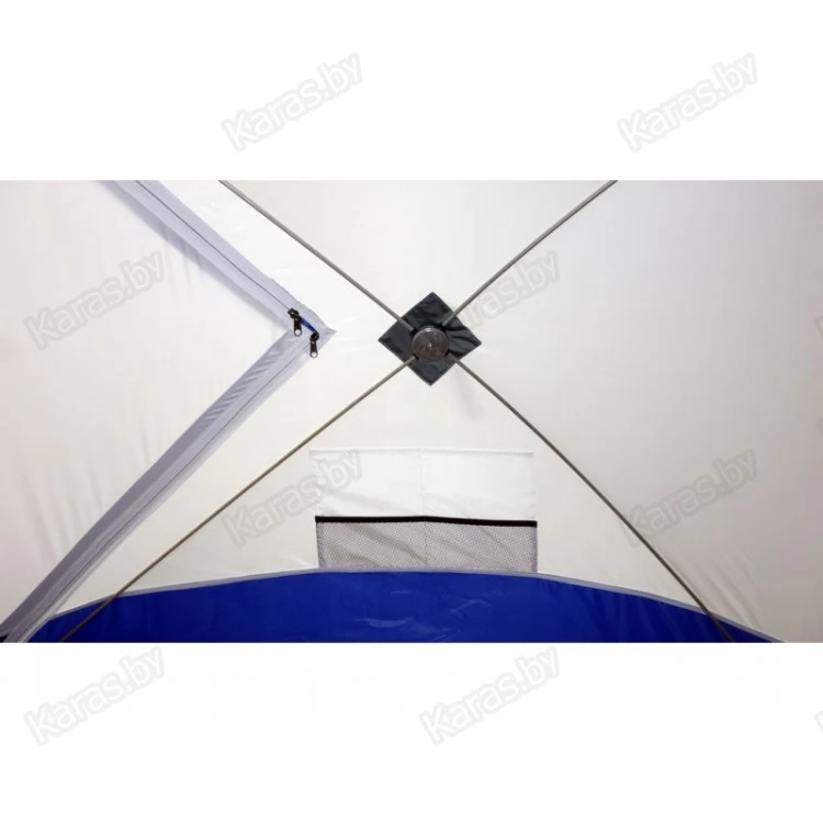 Обратите внимание, что тент не обладает дышащими свойствами. Для циркуляции воздуха внутри палатки рекомендуем использовать форточки или бегунок на входной двери. Также мы рекомендуем укрепить данную палатку растяжками, независимо от наличия ветра.