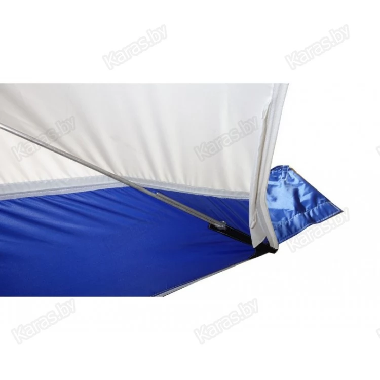 5.При креплении укрытия на льду распределять растяжки симметрично по всему периметру, что поможет избежать перекоса и чрезмерной нагрузки на молнию входной двери.