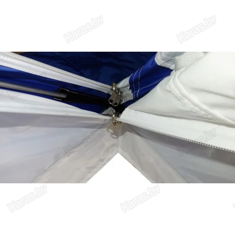 4. Открыть одну сторону, расстегнув молнии. Установить стойки.