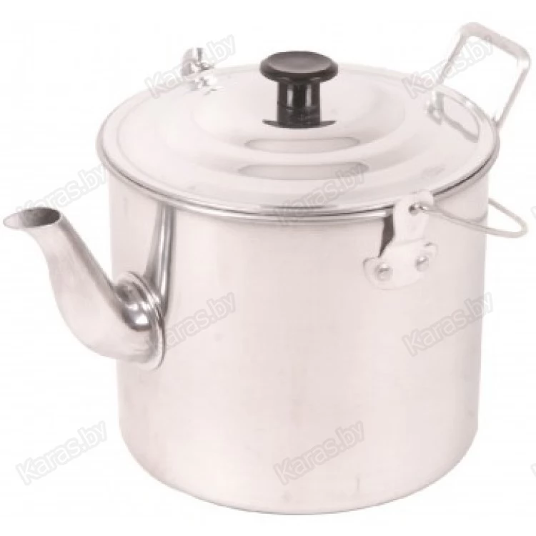 Легкий походный чайник из алюминия с объемом 2,8 л. Вскипяченной за раз воды хватит на 6-8 человек. Чайник имеет удобную складную ручку и правильную форму носика для разливания по чашкам. Рекомендован для использования на костре, а также на плитках и горелках.