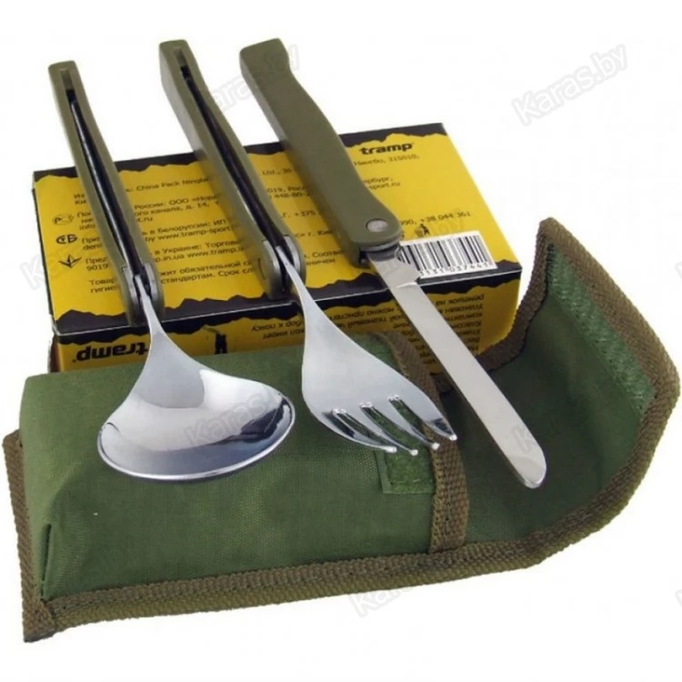 Набор столовых приборов Tramp TRC-049 предназначен специально для походов и кемпингов. Приборы компактные за счет того, что они складываются. Сделаны из нержавеющей стали и очень прочные. Их всегда можно сложить в тканевый чехол и положить в рюкзак или даже просто в карман. Ручки приборов сделаны из пластика, поэтому вы никогда не обожжетесь при приеме пищи.