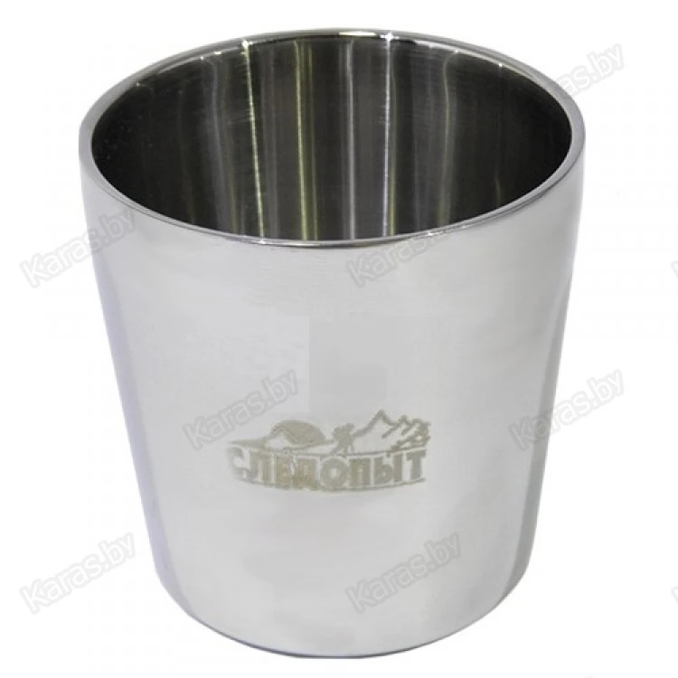 Изотермический стакан. Процесс изготовления представляет собой штамповку и последующее сваривание двух независимых сосудов разных диаметров. Благодаря двойной стенке и внутренней термоизоляции, изделие сохраняет температуру содержимого и предотвращает нагревание стенок, поэтому идеально подходит для употребления горячих напитков.